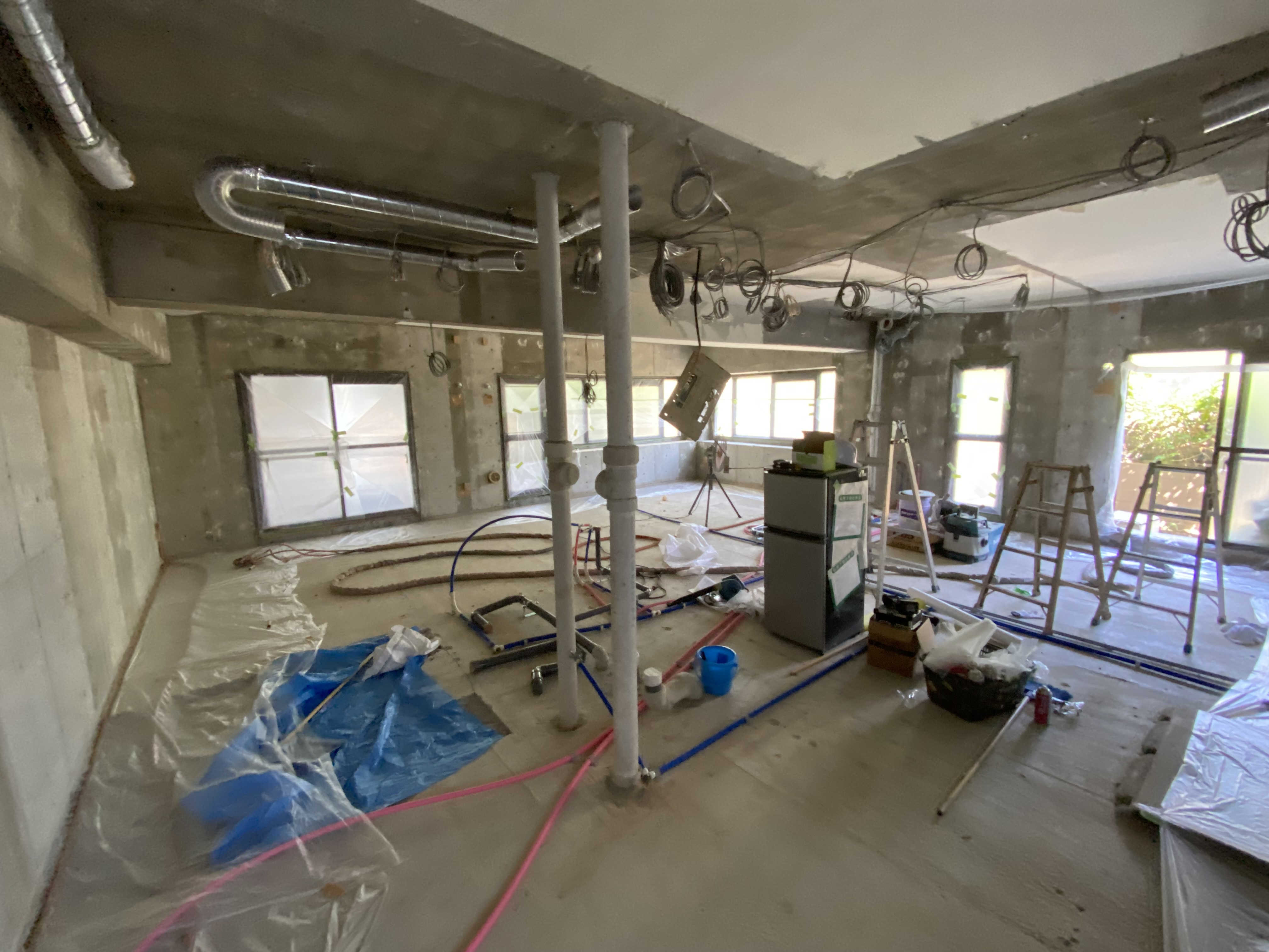 また、 床・壁・天井、キッチン等の水回りの設備などを解体・撤去し、スケルトンリノベーションをおこなっております。